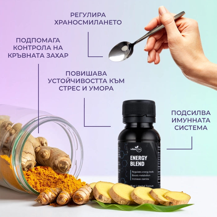 Tinktúra „Energy Blend“ predstavuje vysokokvalitný extrakt, ktorý spája silu rhizómov zázvoru a kurkumy. Tieto dve rastliny, patriace do tej istej botanickej čeľade, sú kameňom základným v ázijskej kultúre a ajurvéde vďaka svojim mocným adaptogénnym, tónujúcim a všeobecne posilňujúcim vlastnostiam. Užitie tinktúry „Energy Blend“ je jednoduchý a efektívny spôsob, ako dodať organizmu rôznorodé bioaktívne látky, ktoré vám zabezpečia pocit energie, vitality a sily, aby ste mohli čeliť výzvam dňa.