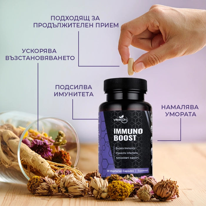 „Immuno Boost“ je odborne vyvinutá, prírodná formula od VitaOn, vytvorená tak, aby poskytla komplexnú podporu a udržala správne fungovanie vášho imunitného systému. Každá kapsula spája silu overených bylinných extraktov a esenciálnych mikroelementov, ktoré pracujú v synergii s cieľom zvýšiť životný tónus a odolnosť organizmu. Formula je navrhnutá nielen na stimuláciu imunitnej odpovede, ale aj na pomoc telu prispôsobiť sa výzvam moderného života.