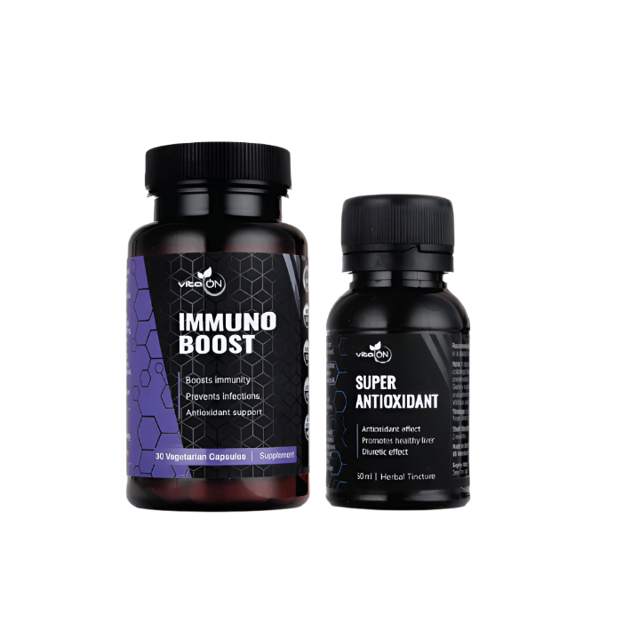 Kombinácia tinktúry „Super Antioxidant“ s produktom VitaOn „Imunostimulant“ spája pôsobenie prírodných bylinných extraktov so silnými imunomodulačnými, antioxidačnými a adaptogénnymi vlastnosťami.