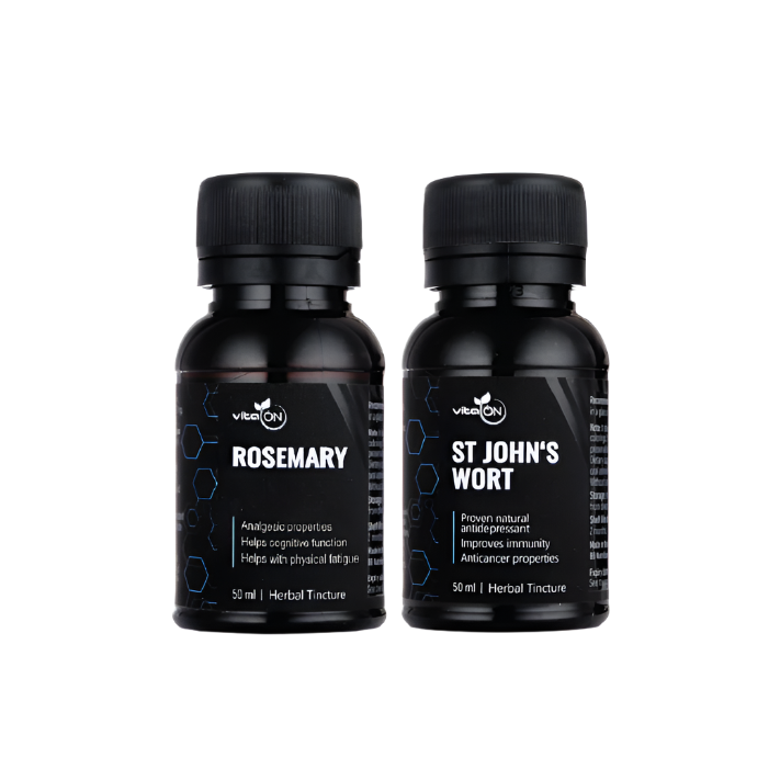 Kombinácia dvoch tinktúr - "ľubovníka bodkovaného" a "rozmarínu" prispieva k dobrému zdraviu a funkcii mozgu.