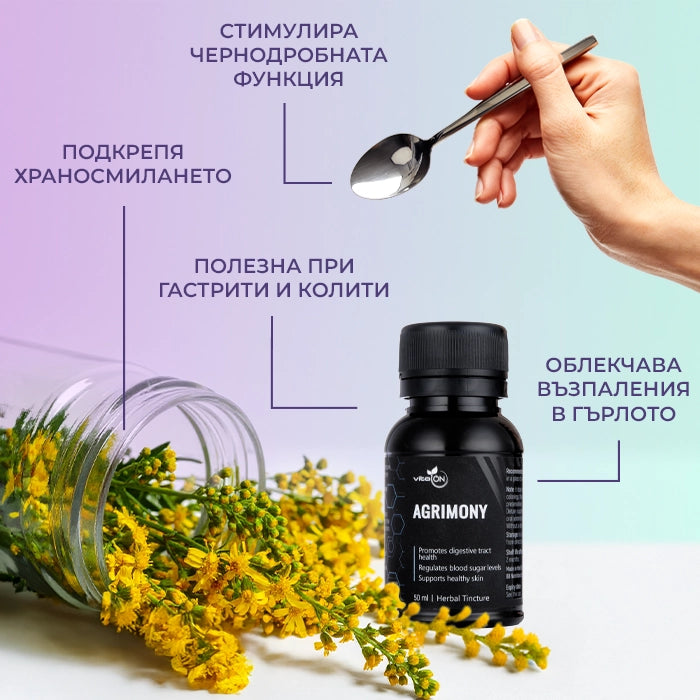 Tinktúra „Agrimónia“ predstavuje vysokokvalitný extrakt z vňatí byliny agrimónia, známej tiež ako „bičík“. Táto bylina je bohatá na organické zlúčeniny s vysokou biologickou aktivitou, ktoré prispievajú k jej širokému spektru účinkov. Formula je bohatá na triesloviny a bioflavonoidy, ktoré majú priaznivý vplyv pri rôznych zápalových stavoch, vďaka svojim silným antioxidačným a protizápalovým vlastnostiam.