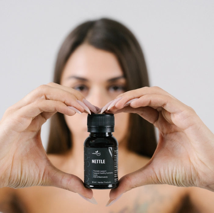 Listy Žihľava dvojdomá prispievajú k udržaniu zdravého hormonálneho balansu u mužov. Aktívne zložky sa viažu na proteín nazývaný pohlavný hormón viažuci globulín (SHBG), čo umožňuje viac testosterónu zostať v voľnej, aktívnej forme. To môže viesť k zvýšenému libidu, väčšej energii a tónusu. Pŕhľava tiež inhibuje enzým aromatázu, ktorý premieňa testosterón na estrogén, čím pomáha udržiavať priaznivý pomer medzi týmito dvoma hormónmi, čo je dôležité pre celkové mužské zdravie.